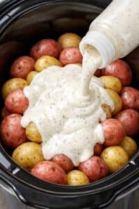 Dump this bottled Italian dressing and only 2 more ingredients over potatoes in the slow cooker for a simple, cozy side with a built-in veggie.