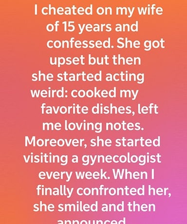Weeks went by, and her calmness was both comforting and unsettling. She mentioned having frequent gynecologist appointments, and though I tried to trust her, guilt made me suspicious.