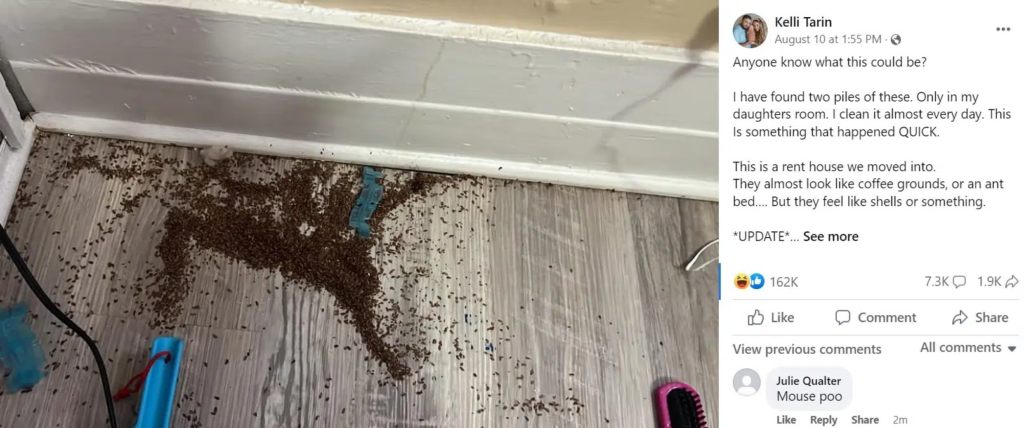 Two little piles. Brown. Crumbly. Kind of like coffee grounds, but not quite. No movement. No smell. The texture looked like dirt mixed with tiny shells. And since it was found in a child’s room, it immediately triggered that deep parental alarm bell of: Okay… what is this and how fast do I need to freak out?