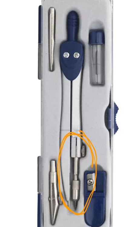 It’s the small attachment that fits onto one arm of the compass and grips the graphite lead so you can draw clean, precise circles. Without it, the compass becomes almost useless. The lead holder quietly keeps everything aligned, balanced, and functional — doing essential work without ever drawing attention to itself.
