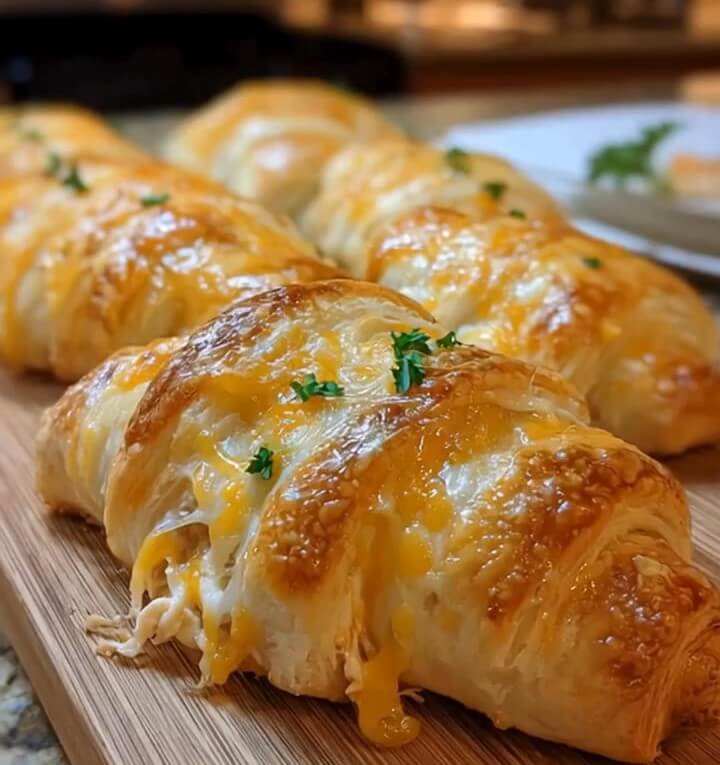Flaky crescent rolls filled with creamy, cheesy chicken—this quick and easy recipe is perfect for busy weeknights, parties, or a fun twist on a simple dinner.