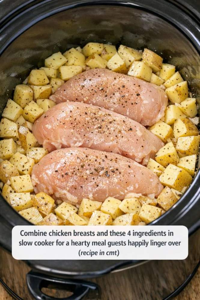 Cover and cook on LOW for 5–6 hours or on HIGH for 2.5–3.5 hours, until the chicken reaches 165°F internally and the potatoes are fork-tender.