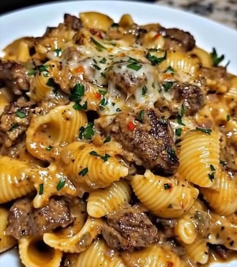 Rich, cheesy, and packed with bold flavors, this pasta dish brings together tender steak and a creamy garlic sauce that turns an ordinary meal into something unforgettable.