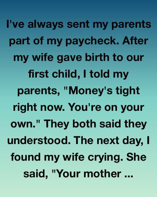 For years, it made me proud to send part of my paycheck to my parents. My mom cleaned houses, my dad drove deliveries long hours. They weren’t rich, but they were steady, hardworking, and never asked for anything. Supporting them felt right—it felt like love in action.