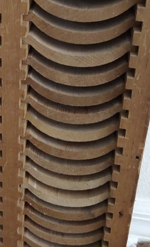 The wooden frame held the damp clay tiles in position while they cured. The notches and pegs helped support the shape and prevent warping. If the clay dried unevenly, it could crack. If it went into the kiln too wet, it might shatter entirely.