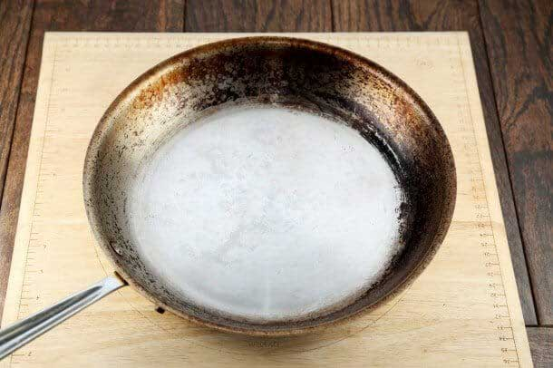 This method helps loosen baked-on residue without requiring endless scrubbing.