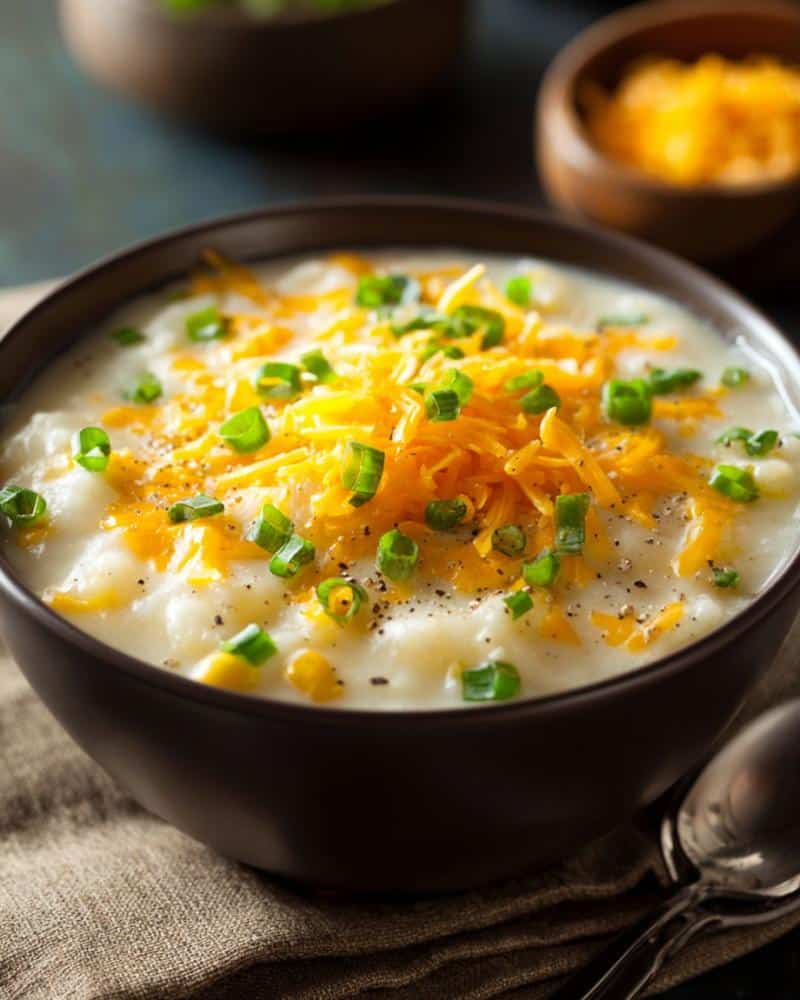 Prep potatoes the night before by storing chopped pieces in water in the fridge to prevent browning. For a vegetarian option, use vegetable broth and a meat-free condensed soup. Add shredded chicken or diced ham near the end for extra protein. Boost flavor with garlic powder or smoked paprika without adding extra prep. For dairy-free needs, use dairy-free soup and plant-based milk like oat or coconut. To thicken further, reduce broth slightly or let the chowder sit uncovered on WARM before serving. Leftovers store well for up to three days and reheat best with a splash of broth or milk to restore creaminess.