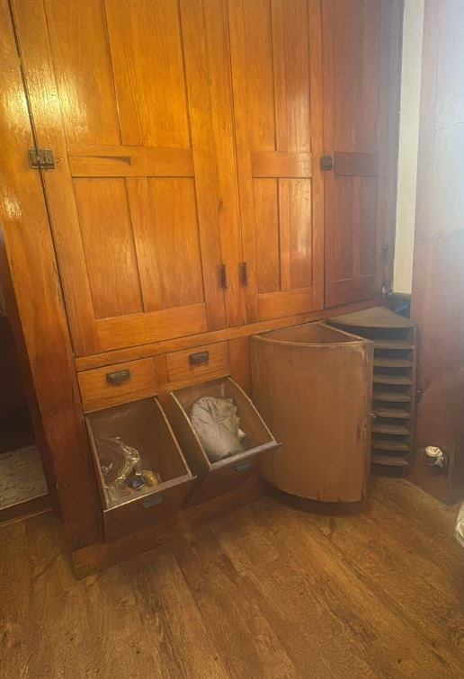 These weren’t decorative antiques. Pantry bins were carefully planned, custom-built, and essential for managing the daily rhythm of a busy home.