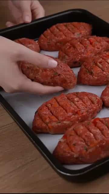 In a large mixing bowl, combine the ground beef, squeezed grated potatoes, grated carrot, diced red bell pepper, grated onion, parsley, and crushed garlic. Season with salt, black pepper, and sweet paprika. Add the eggs and mix thoroughly until everything is evenly blended.