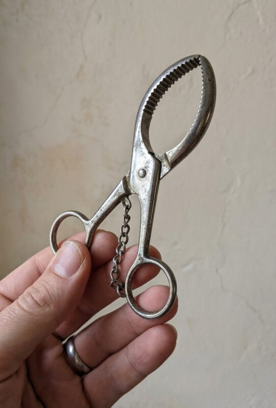 You’re browsing a random garage sale, sorting through the usual clutter — mismatched mugs, mystery cables, old candles — when you spot it. A strange little metal gadget. It has a loop, a handle, and kind of looks like oversized scissors. You pick it up and think, “Is this a giant cigar cutter?” But no. It’s too big. And honestly, who would sell a novelty cigar cutter anyway?