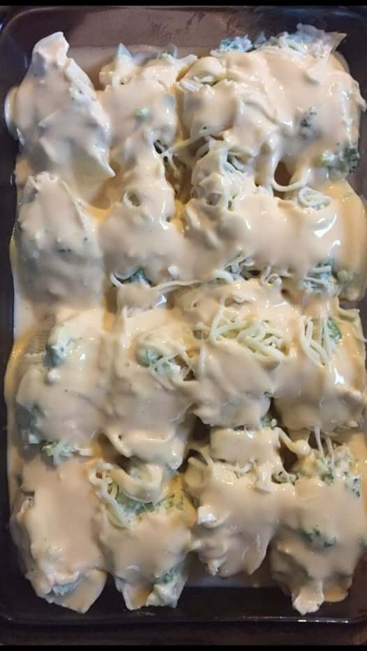 Pour this creamy mixture into the prepared baking dish and place the cooked chicken breasts on top. In a separate bowl, mix the crushed butter crackers with melted butter and sprinkle the mixture evenly over the casserole.