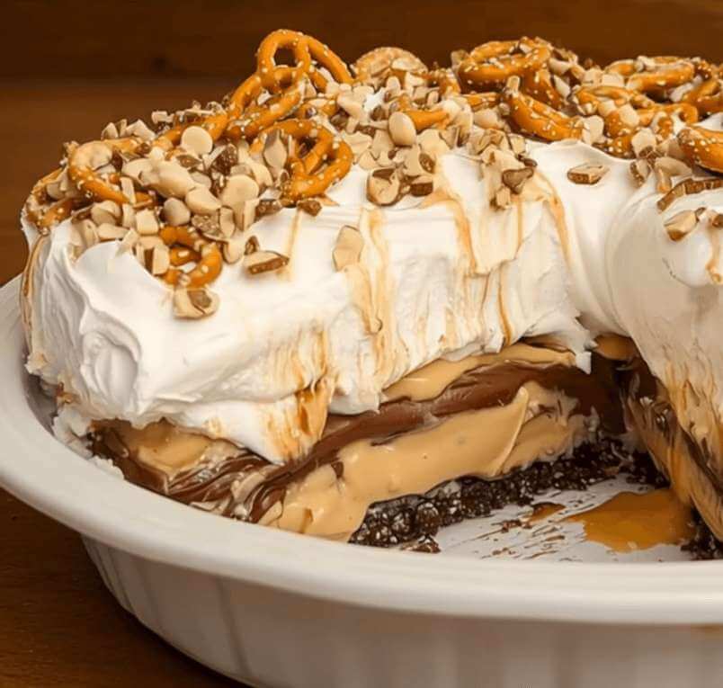 If you love desserts that combine sweet, salty, and creamy flavors, this No-Bake Peanut Butter Pretzel Pie will steal your heart. It’s an easy, no-oven-required treat that layers a buttery pretzel crust, a smooth peanut butter filling, rich chocolate pudding, and a fluffy whipped topping. Perfect for summer parties, holidays, or any day you don’t want to turn on the oven, this dessert always gets rave reviews.