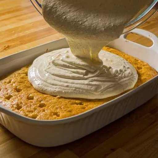 Spread the whipped topping evenly over the pudding layer, then sprinkle cinnamon and nutmeg on top to give it that signature holiday touch. Refrigerate the cake for at least 2 hours, or until fully chilled. Slice, serve, and watch it disappear—this dessert is always a crowd favorite.