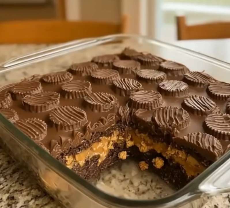 Serving Suggestion: This indulgent dessert tastes amazing warm, with the peanut butter cups slightly melted into the rich chocolate layers for an extra decadent treat.