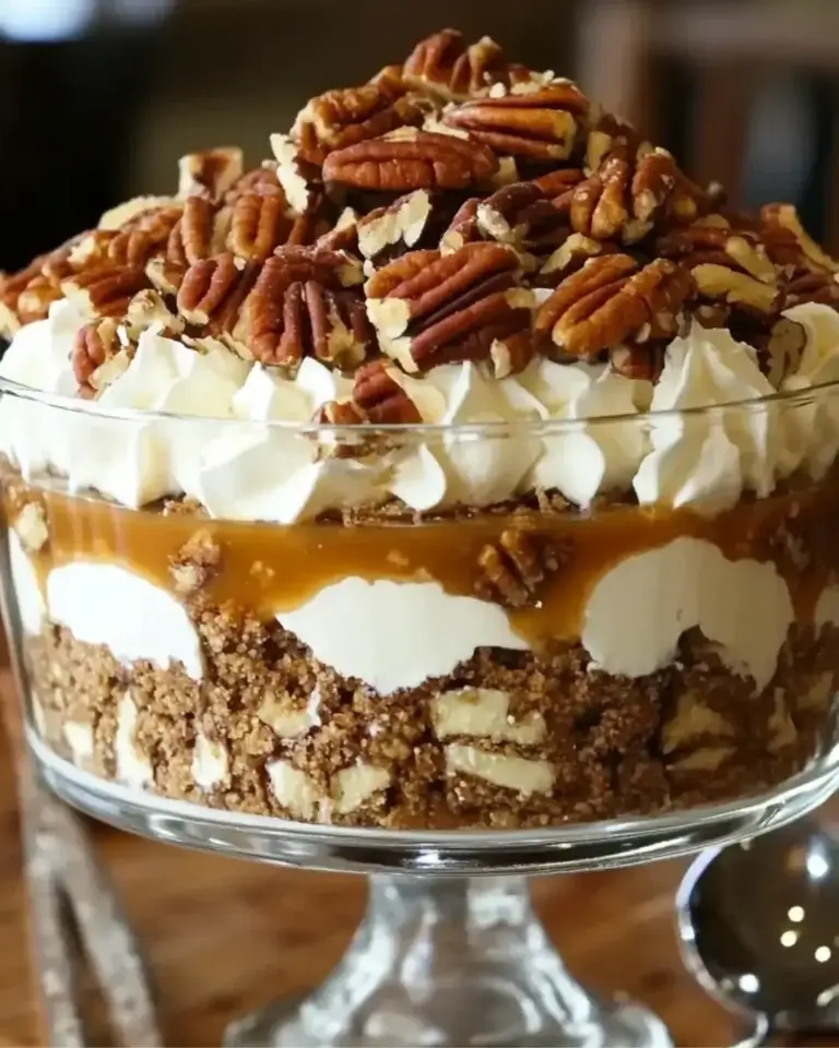 If you love the rich flavors of pecan pie and creamy cheesecake, this Pecan Pie Cheesecake Trifle is a dream come true. With layers of toasted pecans, smooth cream cheese, and decadent caramel and chocolate sauces, it’s a dessert that looks as impressive as it tastes. Perfect for holidays, gatherings, or any time you want a show-stopping treat.