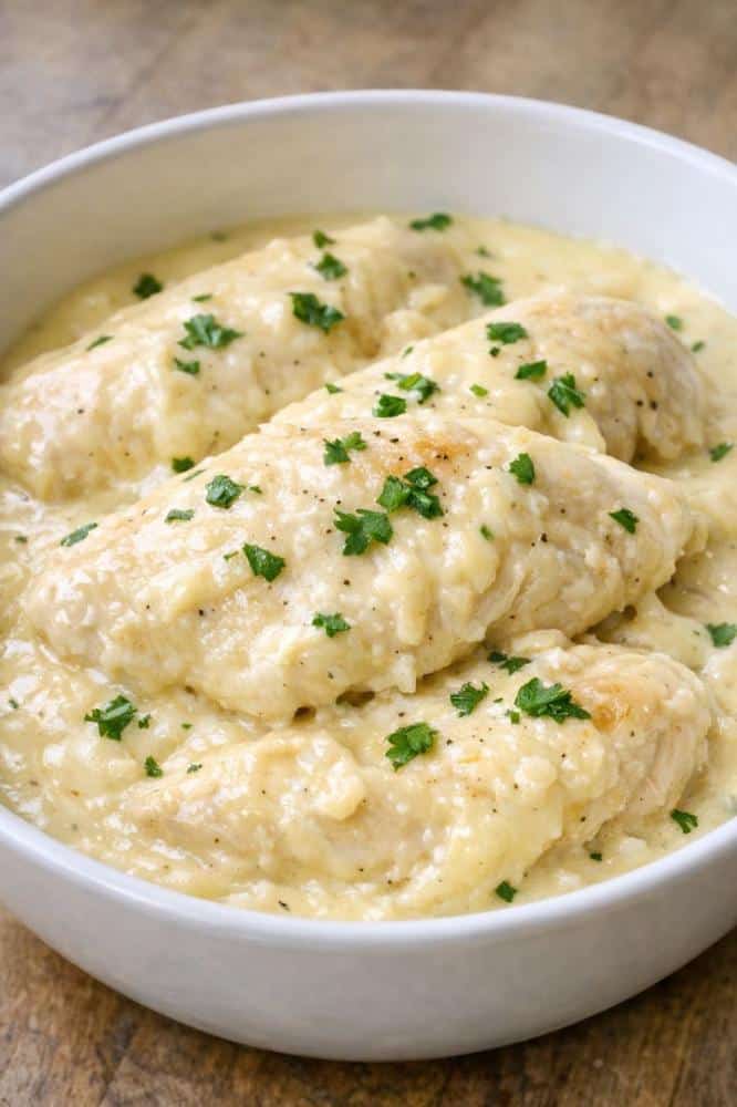 Add dried herbs like thyme, parsley, or Italian seasoning for extra depth. Stir in ranch seasoning or a splash of buttermilk for more tang. Use reduced-fat cream cheese or lower-sodium soup for a lighter version. Swap cream of chicken for cream of mushroom or celery to change flavor. Chicken thighs work beautifully for extra juiciness. For a fuller meal, add frozen mixed vegetables or peas during the last 30 minutes of cooking. Leftovers store well and reheat smoothly—just loosen with a bit of broth or water if the sauce thickens.