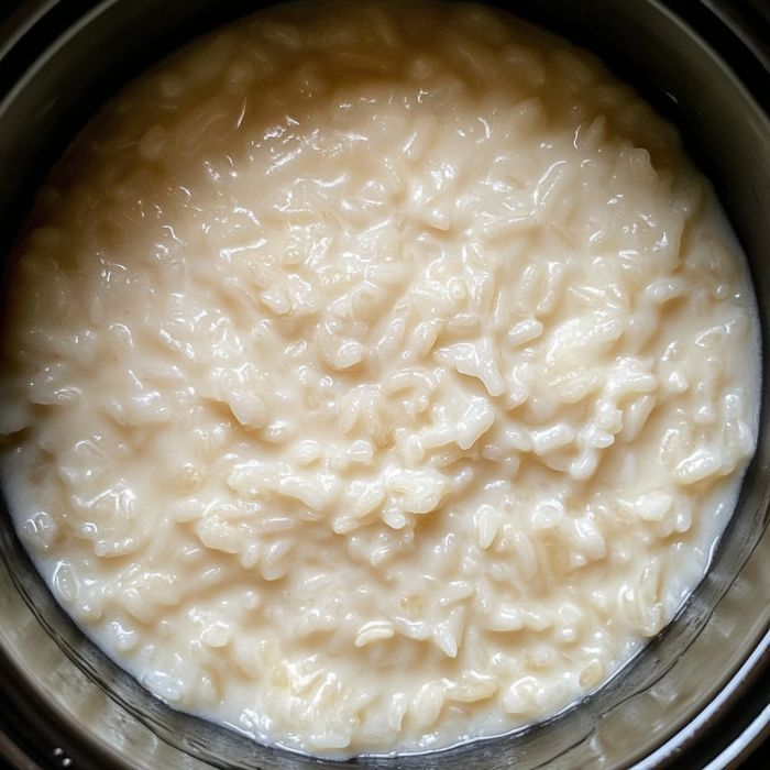 - Cover and cook on low for 4–5 hours, stirring occasionally to prevent sticking, until the rice is tender and the pudding is creamy.