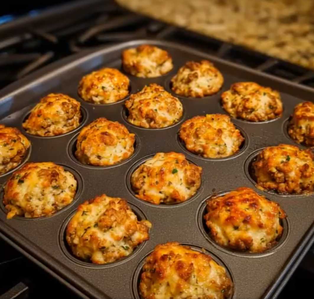 Bake for 20–25 minutes, or until the tops turn golden brown and the sausage is fully cooked.