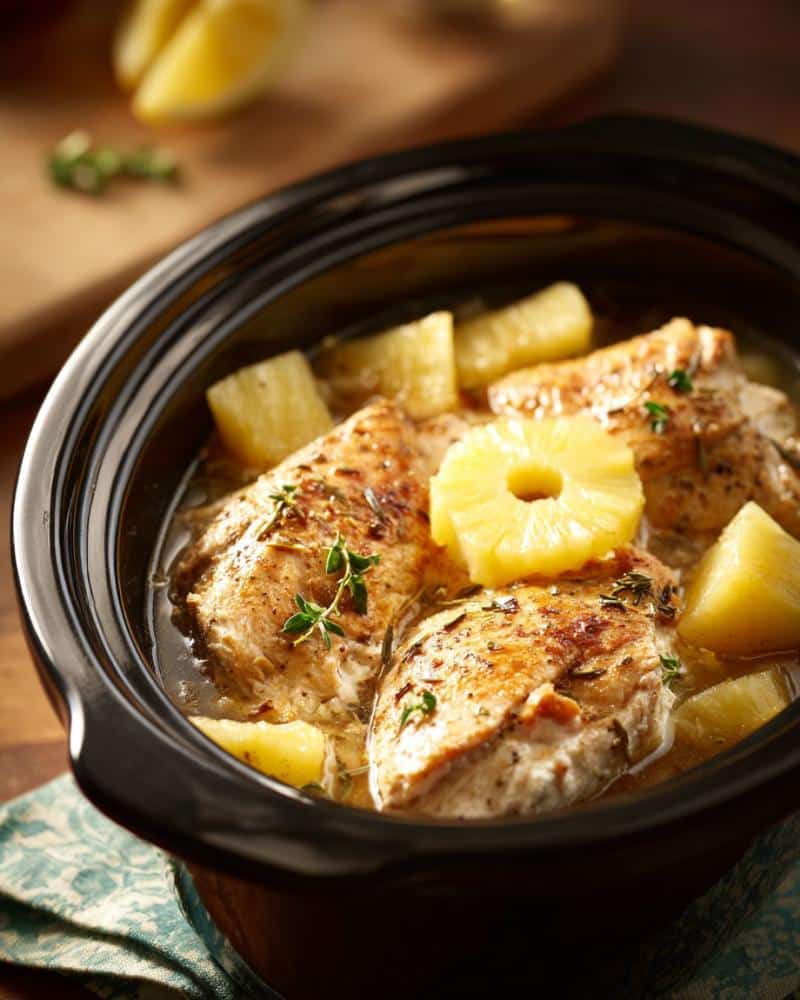 4-Ingredient Slow Cooker Chicken & Cream Cheese with Pineapple Rings