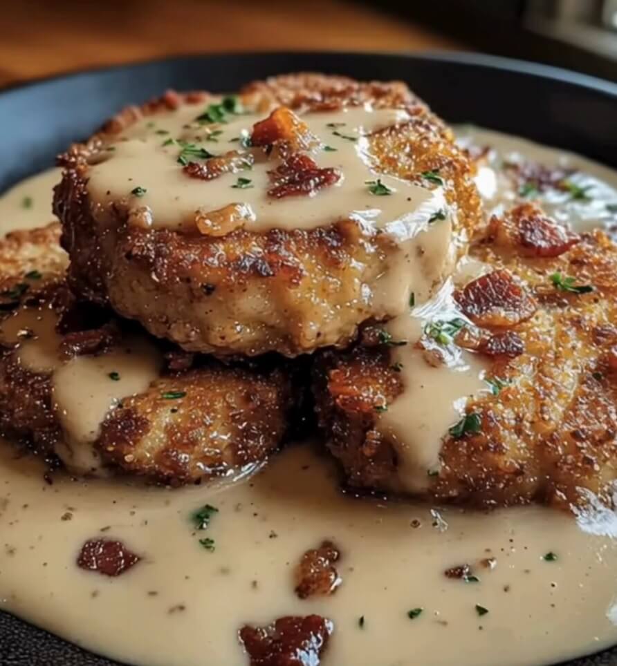 Crispy, golden pork chops smothered in rich, smoky bacon gravy—this Country Fried Pork with Bacon Gravy is the ultimate comfort food that tastes straight out of grandma’s kitchen. It’s tender on the inside, crunchy on the outside, and topped with a creamy, savory sauce that turns any dinner into a Southern-style feast. Whether it’s a Sunday meal or a cozy family dinner, this recipe delivers that down-home flavor everyone loves.