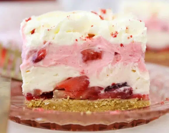 To store Strawberry Delight, wrap it tightly and keep it in the refrigerator for up to a week. It also freezes well for up to three months, which makes it a handy make-ahead dessert when you want something sweet waiting in the freezer.