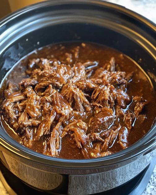 - Shred and serve. Use two forks to shred the beef directly in the slow cooker, mixing it with the sauce for maximum flavor before serving.