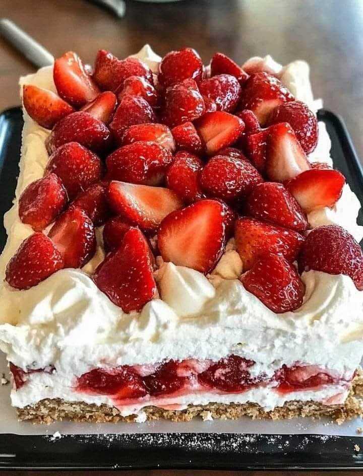 The cake didn’t even make it to day two at my house of six—everyone devoured it! This classic no-bake dessert is perfect for summer get-togethers. Creamy, sweet, and layered with fresh strawberries and crunchy graham crackers, it’s a treat that’s both simple to make and impossible to resist. Whether you’re hosting friends or enjoying a quiet family dessert, this cake always steals the show.