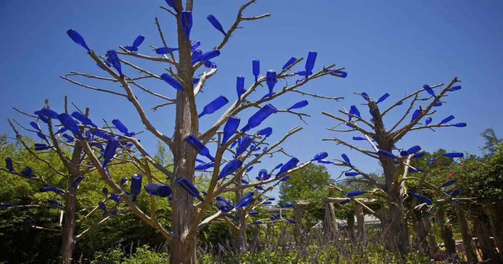If you’ve noticed that many bottle trees feature cobalt blue bottles, there’s a reason. This rich shade of blue has long symbolized healing and protection in folklore. It’s believed to act as spiritual armor, which is why it’s often the color of choice. Other colors work as well, but cobalt blue adds both beauty and symbolic strength. Even if you’re not into superstition, there’s no denying how stunning that glass looks when the sun hits it.