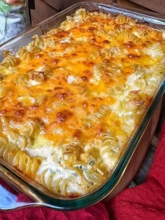 Preheat your oven to 350°F. Bring a large pot of salted water to a boil and cook the rotini just until slightly underdone—so it still has a little bite. Drain the pasta and transfer it to a 9×13-inch glass baking dish. Keep the warm pot on the stove, but do not turn on the heat.