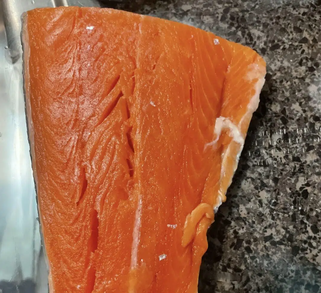 Not all yellowing is caused by storage issues. Some salmon naturally have slightly different tones in certain areas, especially around the belly. Depending on the species and diet, you might see variations that lean more golden or pale.