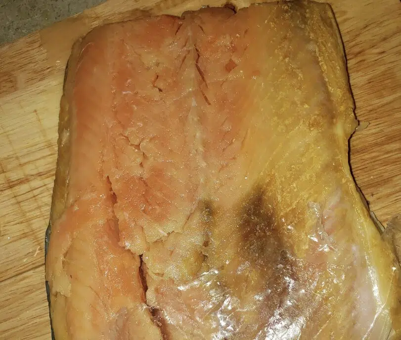 If salmon isn’t sealed well—especially if it’s loosely wrapped or has air pockets—it can lose moisture in the freezer. That dehydration can cause discoloration, which may look white, grayish, or even yellow in spots.