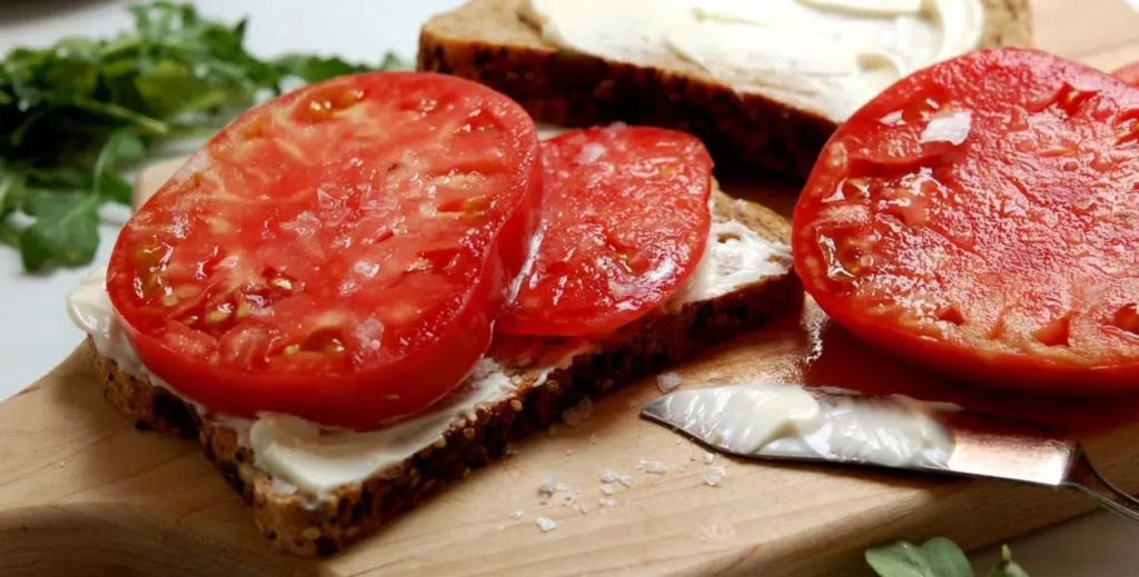 One of the biggest appeals of a tomato sandwich is how effortlessly it comes together. You don’t need a long ingredient list or complicated steps. Start with juicy, ripe tomatoes — whether you prefer beefsteak, heirloom, or even cherry varieties. Pair them with a quality loaf of bread such as sourdough, whole wheat, or a crusty baguette. Add a generous layer of mayonnaise along with a sprinkle of salt and freshly ground pepper to tie everything together.