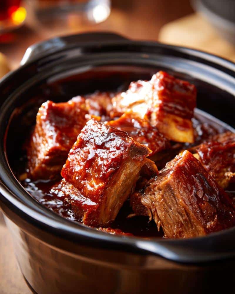 For milder flavor, choose a sweeter barbecue sauce and use water instead of apple juice. Shred the cooked ribs and serve on hamburger buns for easy pulled pork sandwiches that kids often love. If you enjoy heat, use a spicy barbecue sauce or stir in red pepper flakes before cooking. Add smoked paprika for a deeper, smoky note. For extra nutrition, layer sliced onions or carrots under the ribs before adding the sauce. Leftovers reheat well and can be used in quesadillas, baked potatoes, rice bowls, or sandwiches, making this a great cook-once, eat-twice meal option.