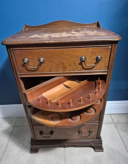Back in the day, sewing cabinets weren’t just decorative furniture — they were essential household tools. People used them to make clothes, curtains, costumes, and all kinds of handmade items long before hot glue guns and fast fashion were a thing.