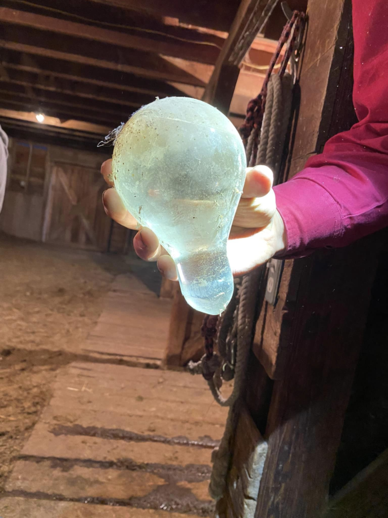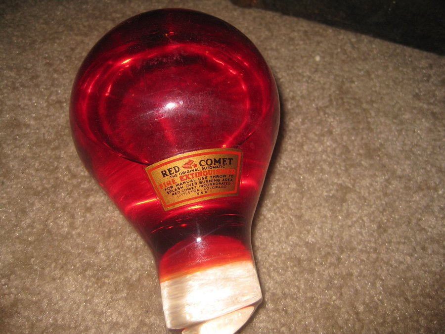 What we found was an old-fashioned automatic fire extinguisher, often called a fire grenade. These devices were used in the late 19th and early 20th centuries as an early form of fire protection. They were typically made of glass and filled with a fire-suppressing liquid, often carbon tetrachloride. When exposed to intense heat, the glass would break, releasing the liquid in an attempt to smother the flames.